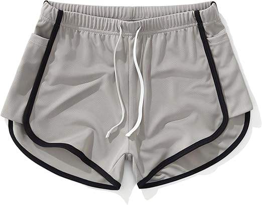 กางเกงขาสั้นตาข่ายผู้ชาย สำหรับวิ่ง ออกกำลังกาย เล่นกีฬา เพาะกาย ทรงเข้ารูป สไตล์วินเทจ