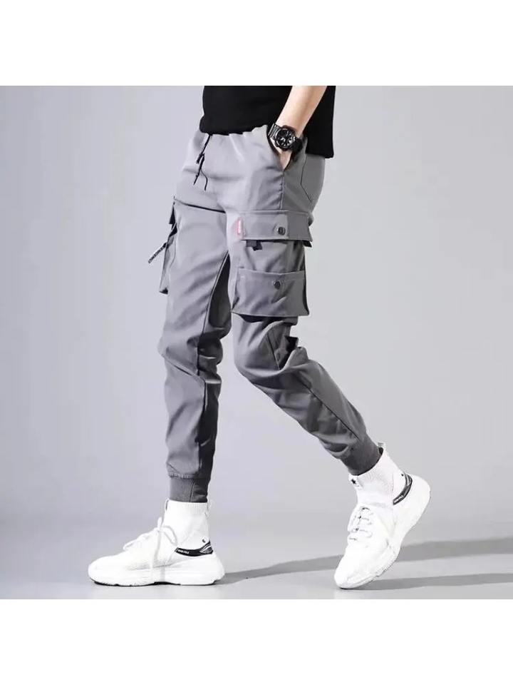 กางเกงลำลองผ้าแคนวาสเอวยางยืดปานกลางสำหรับผู้ชาย ทรงปกติ มีกระเป๋าหลายช่อง กางเกงจ็อกเกอร์ทรงตรง สไตล์สตรีทแฟชั่นฤดูหนาว เหมาะสำหรับออกกำลังกาย