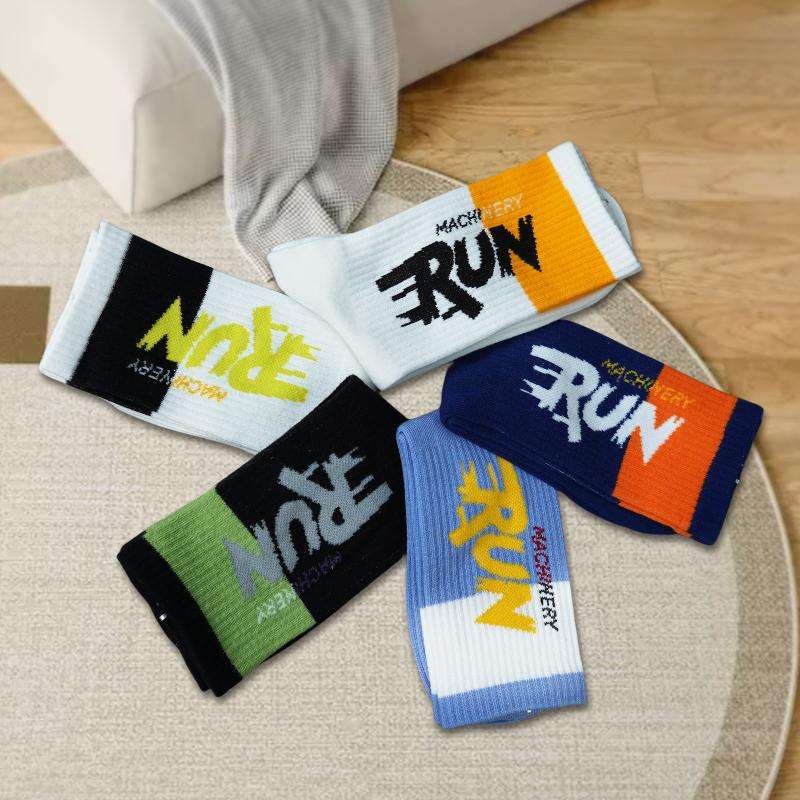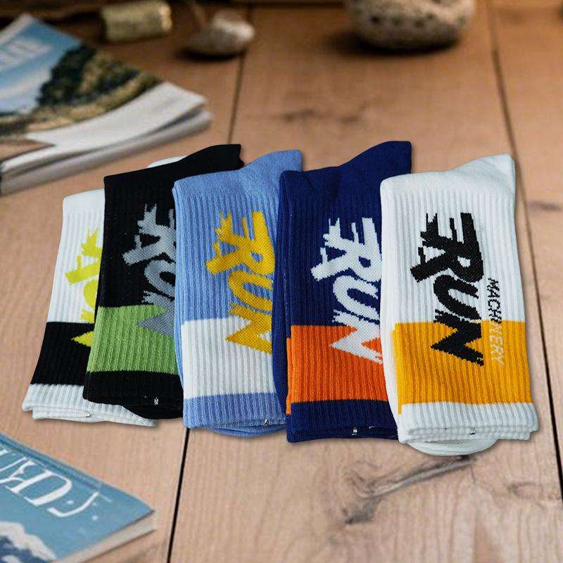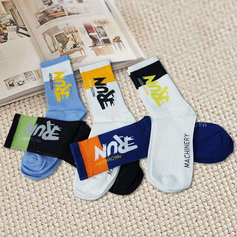 ถุงเท้ากีฬาความยาวปานกลางของผู้ชาย5คู่ลายการ์ตูนยาวดูดซับเหงื่อป้องกันแบคทีเรียสำหรับฤดูใบไม้ร่วง