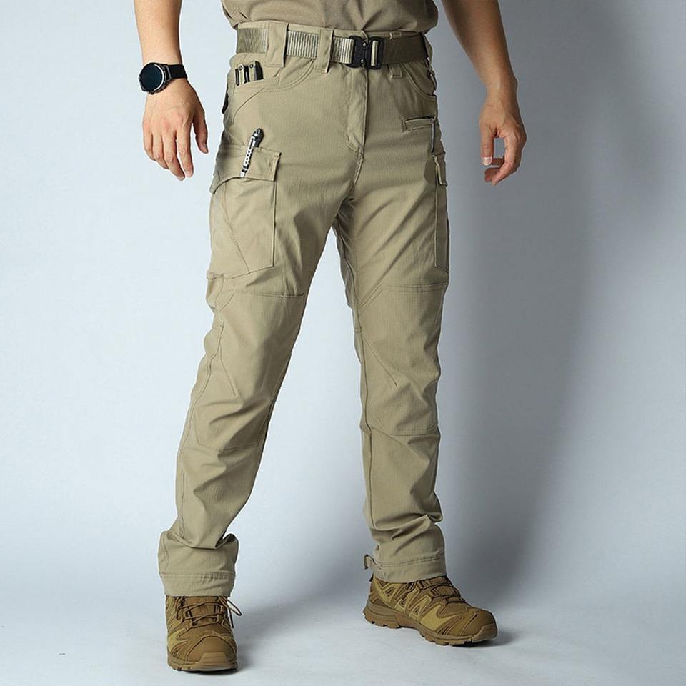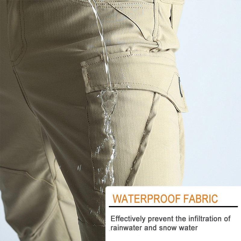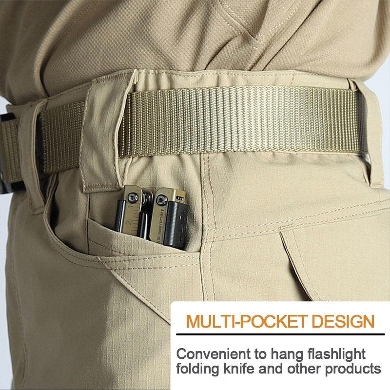 กางเกงคาร์โก้ผู้ชายแบบกลางลำตัว ผ้าโพลีเอสเตอร์/คอตตอน ทอแบบกันลม ระบายอากาศ กันน้ำ น้ำหนักเบา เหมาะสำหรับเดินป่าในฤดูร้อน ติดกระดุม