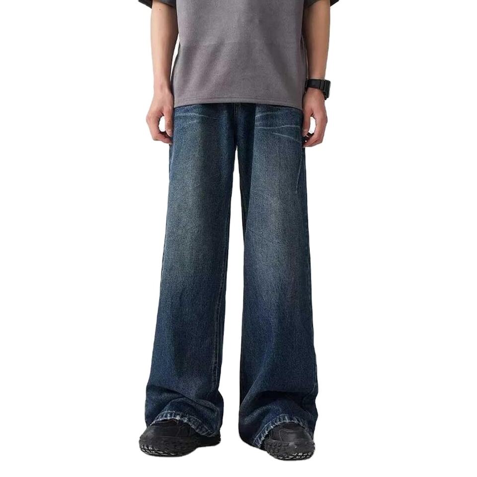 กางเกงยีนส์ทรงหลวมเอวกลางสำหรับผู้ชาย สไตล์ฮิปฮอป ล้างสีแบบสโตนวอช ปักลาย ติดกระดุม แต่งขาดๆ แนวลำลอง สตรีทแวร์สำหรับฤดูหนาว