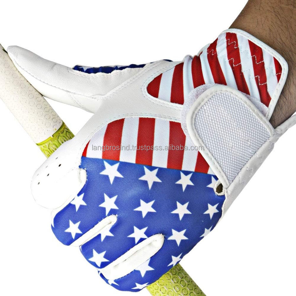 Men's Mini Genuine Leather Golf Gloves Professional Left Hand USA Flag Soft Breathable Hand Grips for Sports Made Pakistan White