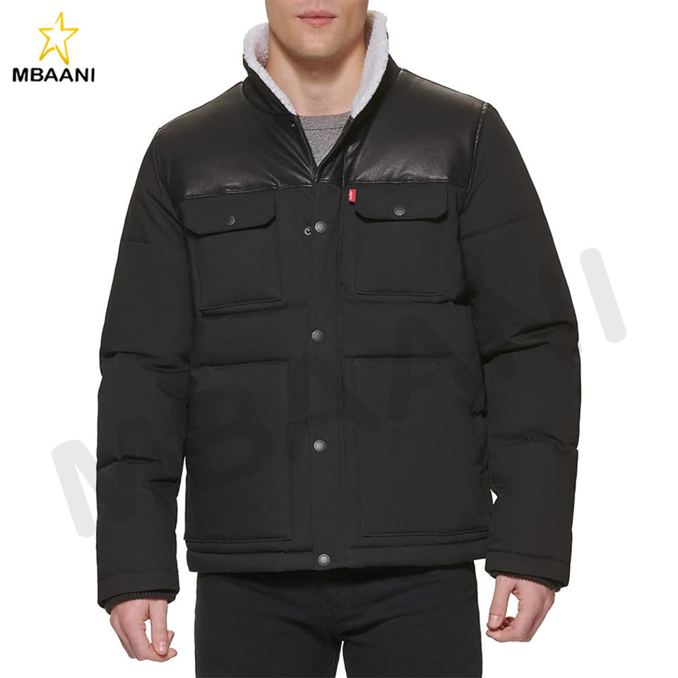 เสื้อแจ็คเก็ตพัฟเฟอร์ผู้ชายแบบผสมผสานวัสดุต่างๆ พร้อมปกบุขนเชอร์ปา (มีไซส์ปกติและไซส์ใหญ่พิเศษ)