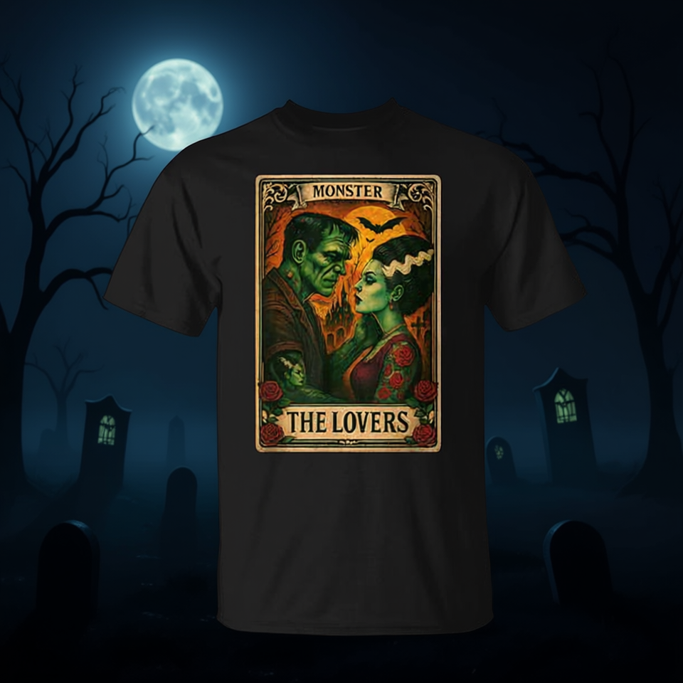 Men's Monster Frankenstein and Bride Graphic T-Shirt Lover's Design for Promotional Use