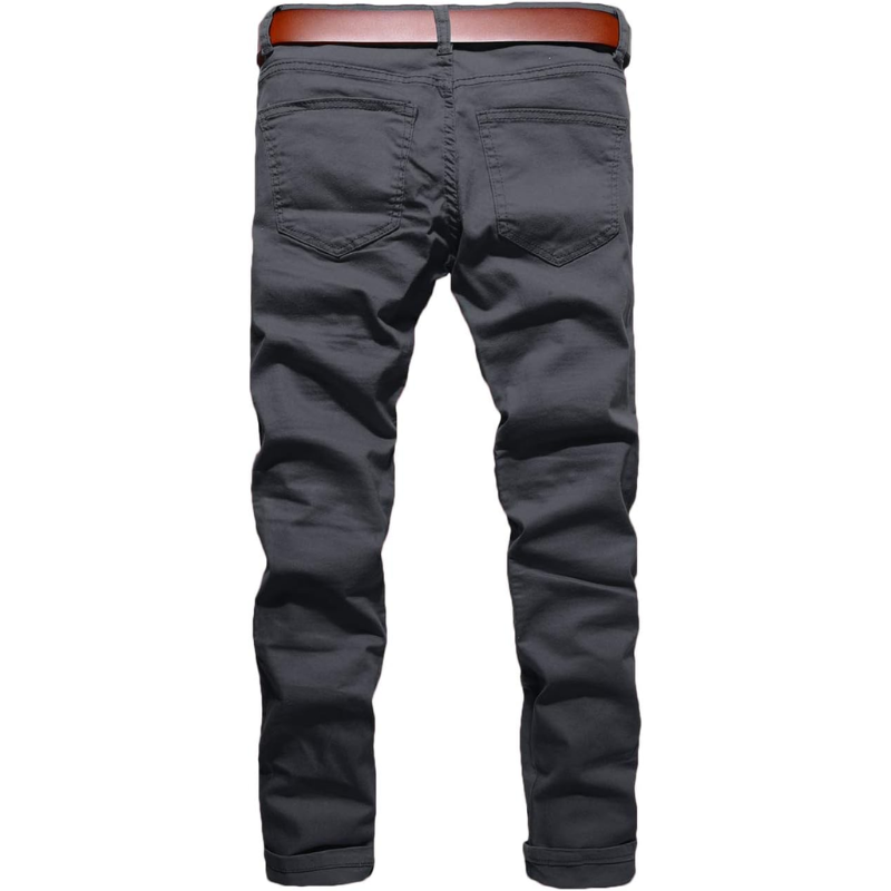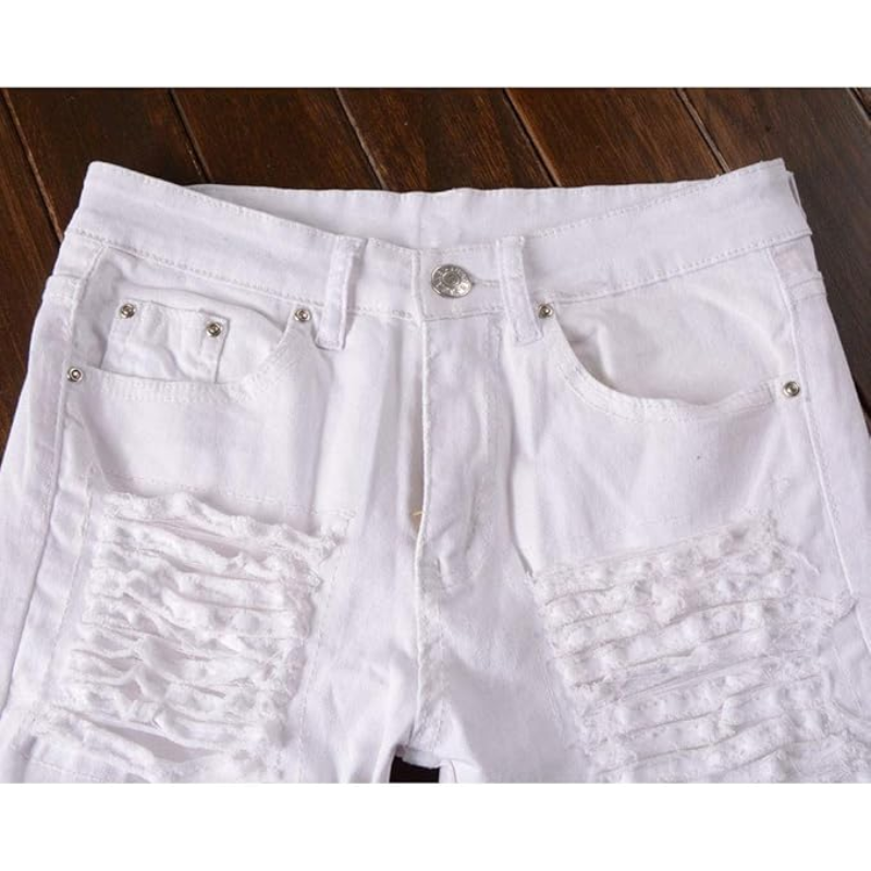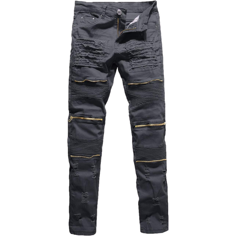 กางเกงยีนส์ทรงสกินนี่ขาดๆ สำหรับผู้ชาย สไตล์นักขี่มอเตอร์ไซค์ แต่งซิปและกระเป๋า แฟชั่นกางเกงยีนส์