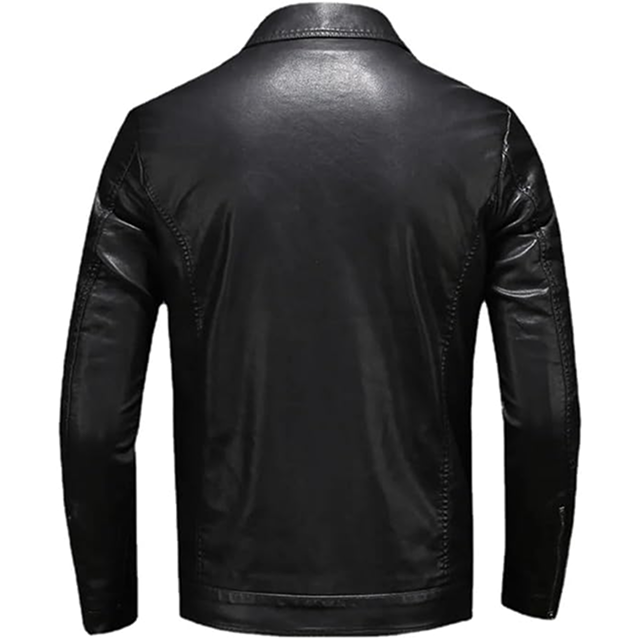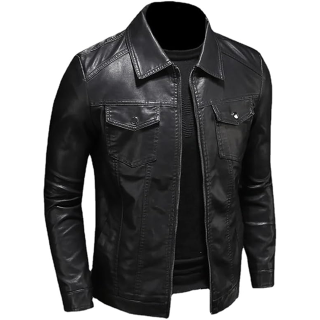 เสื้อแจ็คเก็ตหนังสำหรับผู้ชาย กระเป๋าใหญ่ สีดำ ซิป ปกเสื้อแบบลา펠 ทรงเข้ารูป สำหรับฤดูใบไม้ผลิและฤดูใบไม้ร่วง เสื้อโค้ทหนัง PU สำหรับผู้ชาย