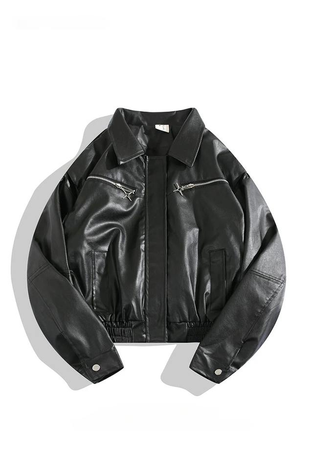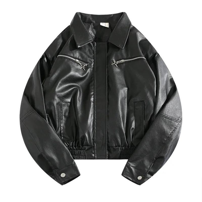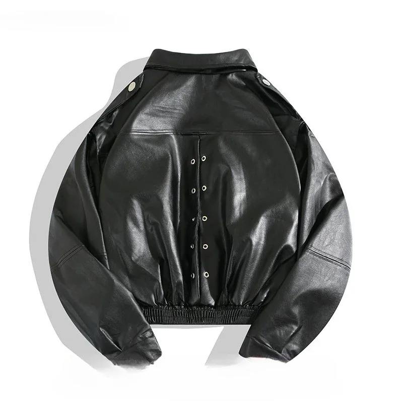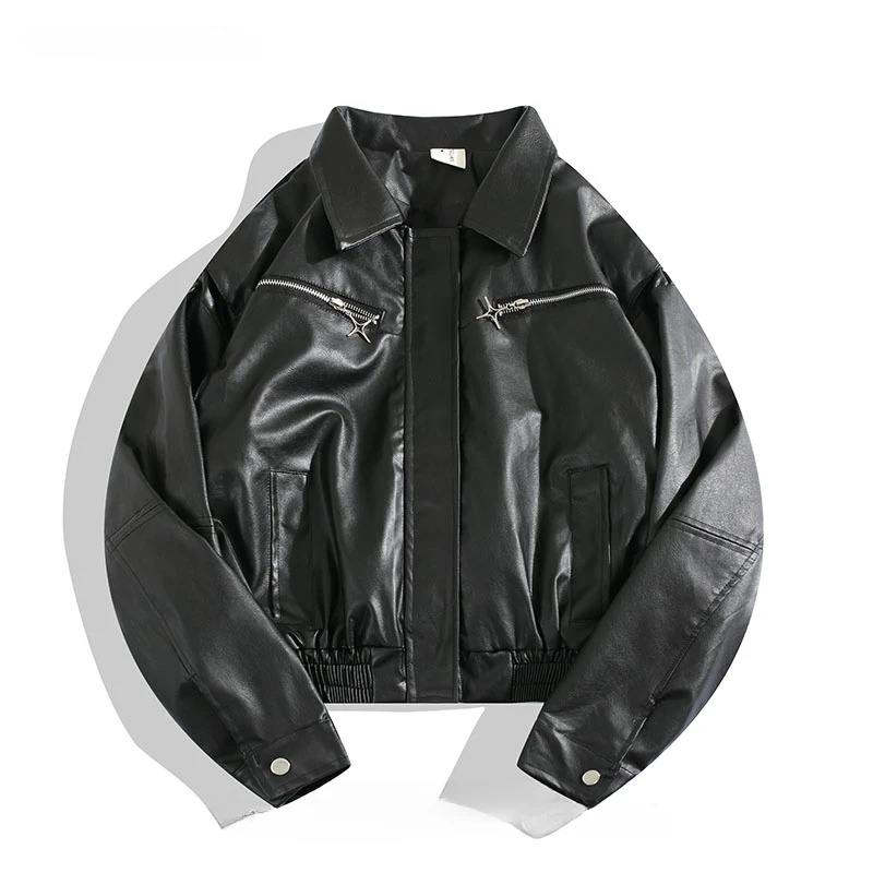 เสื้อแจ็กเก็ตหนัง PU สำหรับผู้ชาย, เสื้อโค้ทซิปตัวสั้นแนวสตรีททรงหลวมสไตล์ฮิปฮอปฤดูใบไม้ร่วงฤดูหนาว