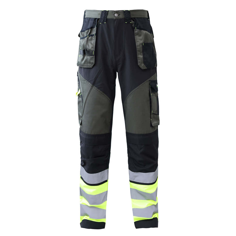 กางเกงทำงานผู้ชายแบบมีหลายกระเป๋า สีสะท้อนแสง ปลอดภัย สำหรับงานช่าง รุ่น 2026 ปรับแต่งได้