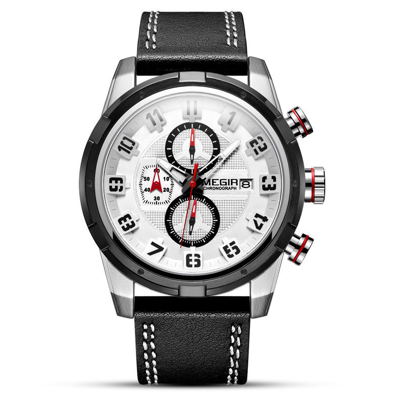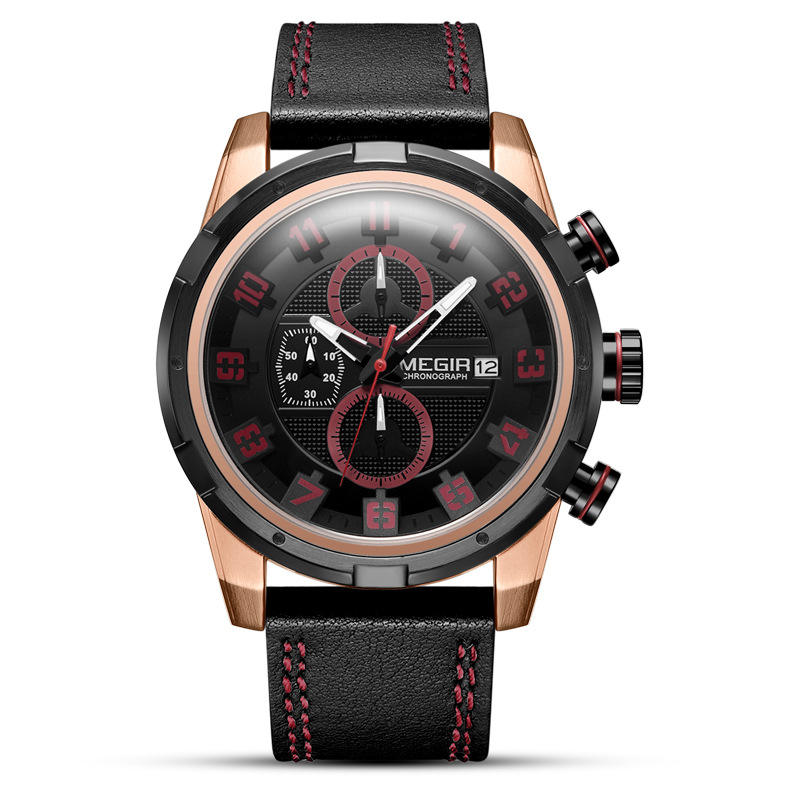 นาฬิกาควอตซ์หนังแท้สำหรับผู้ชายโครโนกราฟแนวสปอร์ตมัลติฟังก์ชัน