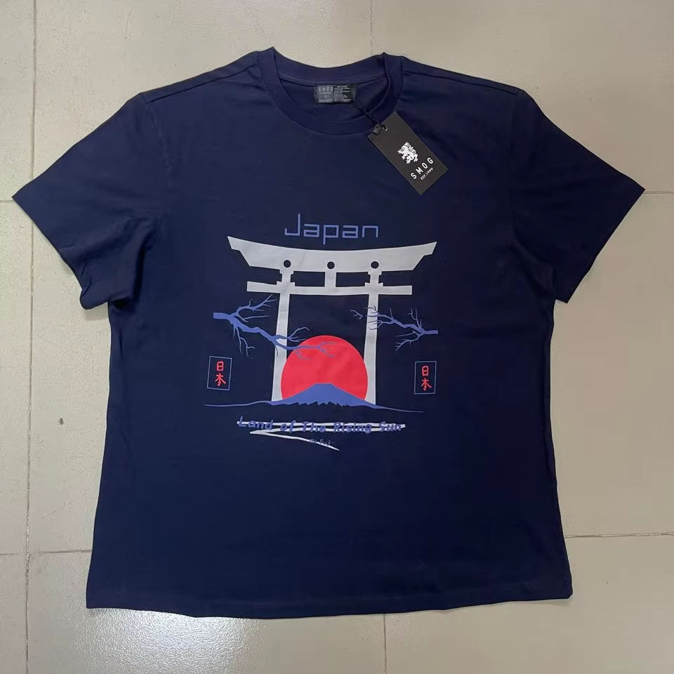 เสื้อยืดแขนสั้นผ้าคอตตอนสีกรมท่าสำหรับผู้ชายเสื้อสไตล์สตรีทแวร์แนวกราฟิกญี่ปุ่นมีประตูพิมพ์ลายพระอาทิตย์ขึ้น