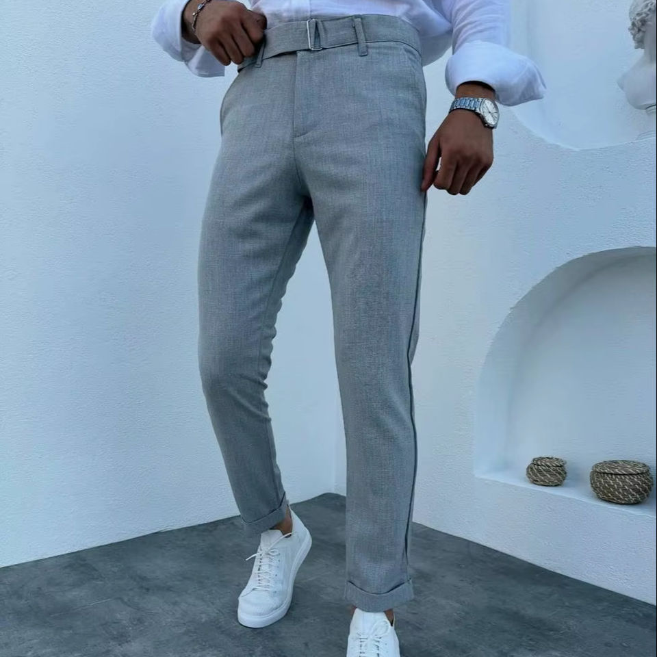 กางเกงขายาวผู้ชายสีน้ำเงินกรมท่า ทรงปกติ ผ้าสเตรช ไซส์ใหญ่ สไตล์ลำลอง เรียบหรู เหมาะสำหรับใส่ทำงาน เอวยางยืด ติดซิป ทรงตรง ผ้าฝ้าย สไตล์ฮิปฮอป