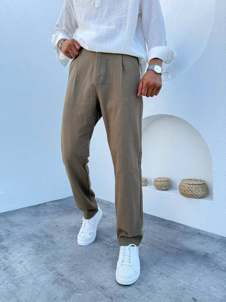 กางเกงผ้ายืดเข้ารูปสีกรมท่าสำหรับผู้ชายกางเกงทำงานอัจฉริยะลำลองเอวยางยืดมีเชือกผูกคอตตอนทรงตรงฮิปฮอปขนาดพิเศษ