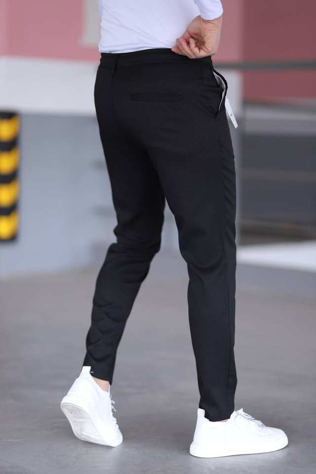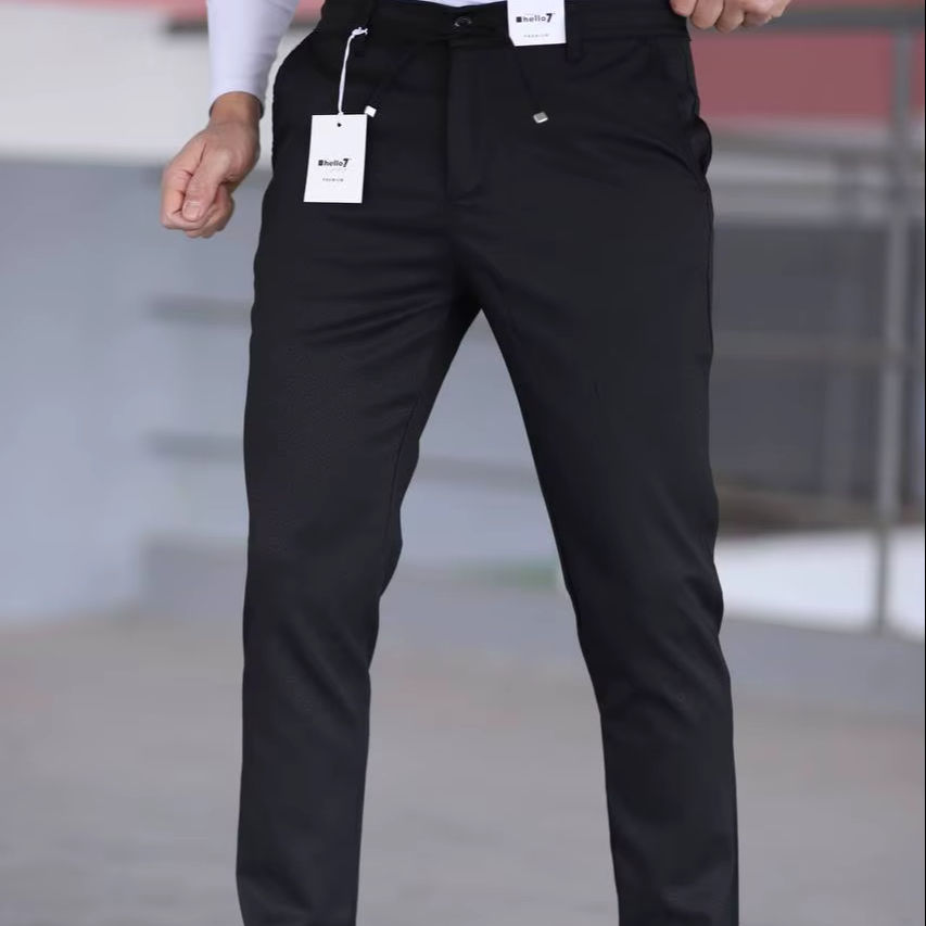 กางเกงผ้ายืดผู้ชายสีน้ำเงินเข้มกันน้ำทรงตรงฮิปฮอป, กางเกงสำนักงานอัจฉริยะลำลองมีซิปกลาง