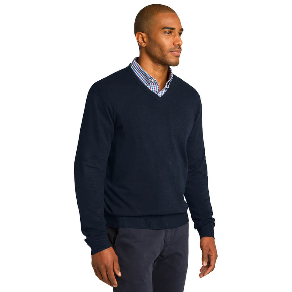 เสื้อสเวตเตอร์คาร์ดิแกนคอวีมีกระดุมสีน้ำเงินเข้มสำหรับผู้ชายสำหรับฤดูหนาว
