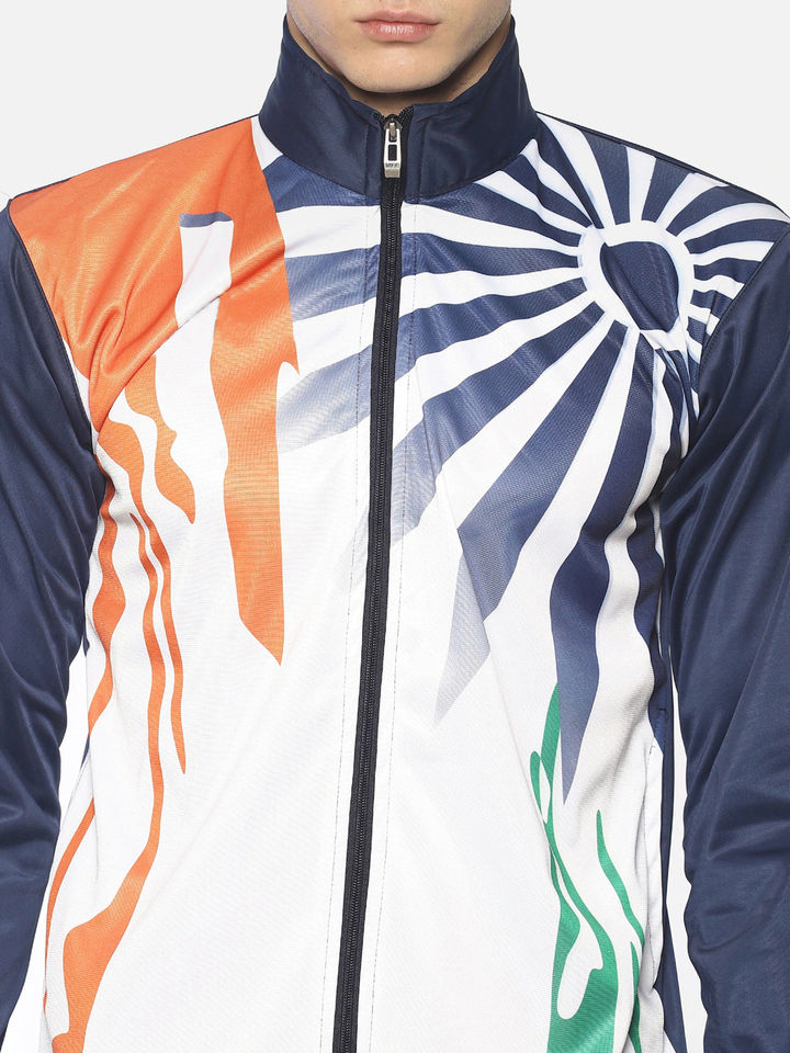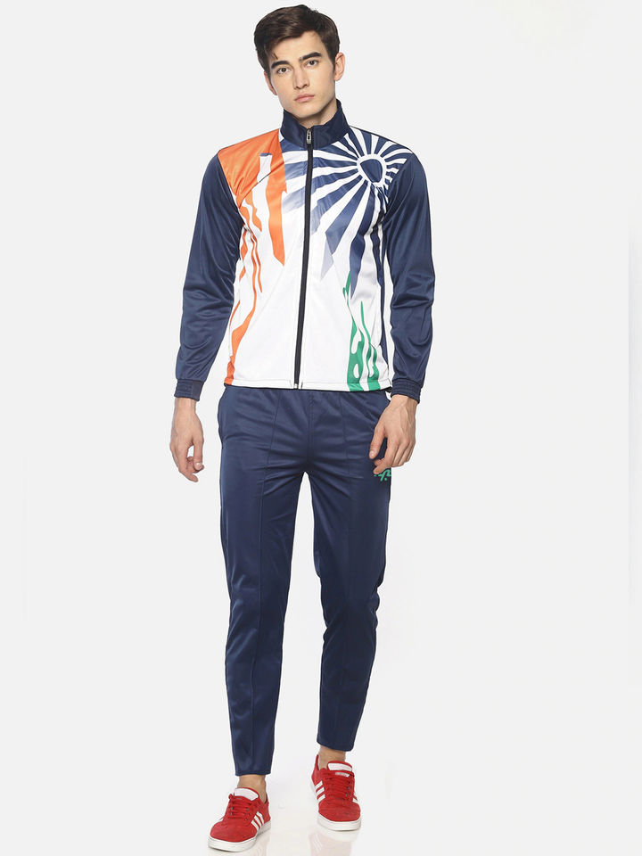 Men's Navy Blue White Printed Sweat Suit Sublimation Training Uniform Polyester Cotton Tracksuits