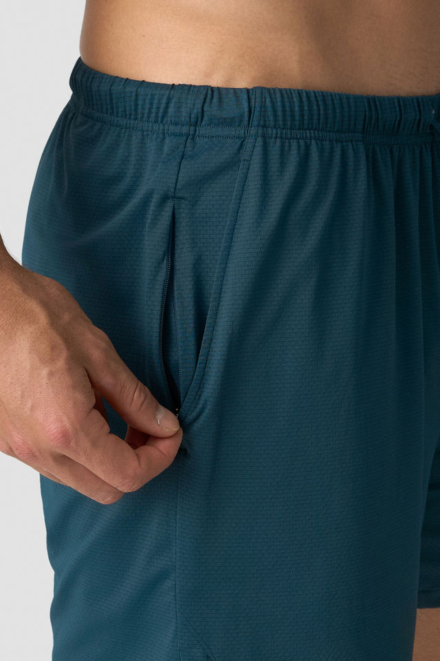 กางเกงขาสั้นผ้าตาข่ายสีกรมท่าสำหรับผู้ชายมีกระเป๋าซิปและผ้ายืดระบายอากาศน้ำหนักเบาสำหรับการฝึกเข้ายิมและกิจกรรมกลางแจ้ง