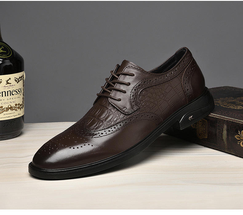 รองเท้าหนังลำลองแบบผูกเชือกทรงกลมสำหรับผู้ชาย รุ่นใหม่ ลายฉลุ ระบายอากาศได้ดี พื้นยางแท้กันลื่น เหมาะสำหรับฤดูใบไม้ร่วง