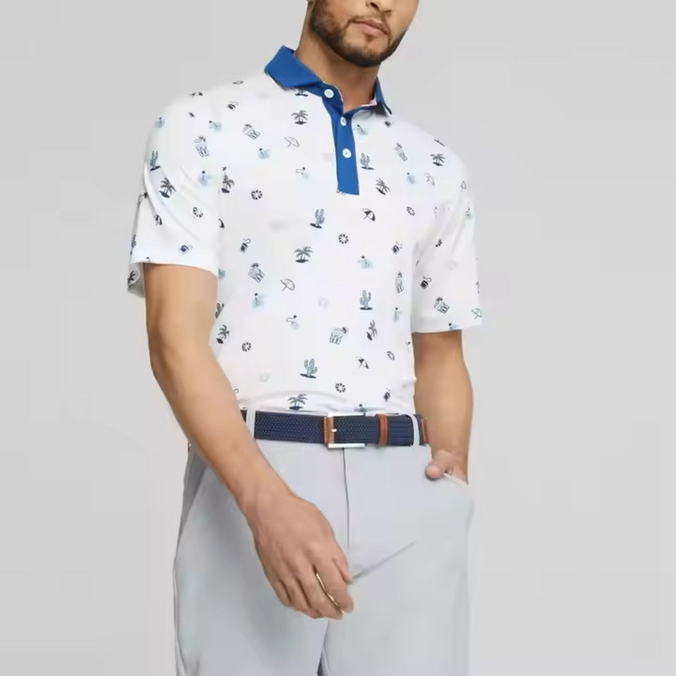 เสื้อโปโลผู้ชายแบบใหม่ ผ้าโพลีเอสเตอร์ พิมพ์ลายแบบซับลิเมชั่น แห้งเร็ว แฟชั่น แขนสั้น สีพื้น ลายพิมพ์ทันสมัย