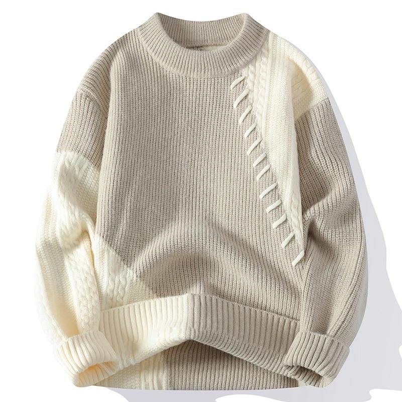 เสื้อสเวตเตอร์กันหนาวแฟชั่นสำหรับผู้ชาย, เสื้อกันหนาวถักกันหนาวคอกลมทรงหลวมลำลองเสื้อสวมหัวใส่ได้ทุกวันไซส์ใหญ่ฤดูใบไม้ร่วงฤดูหนาว