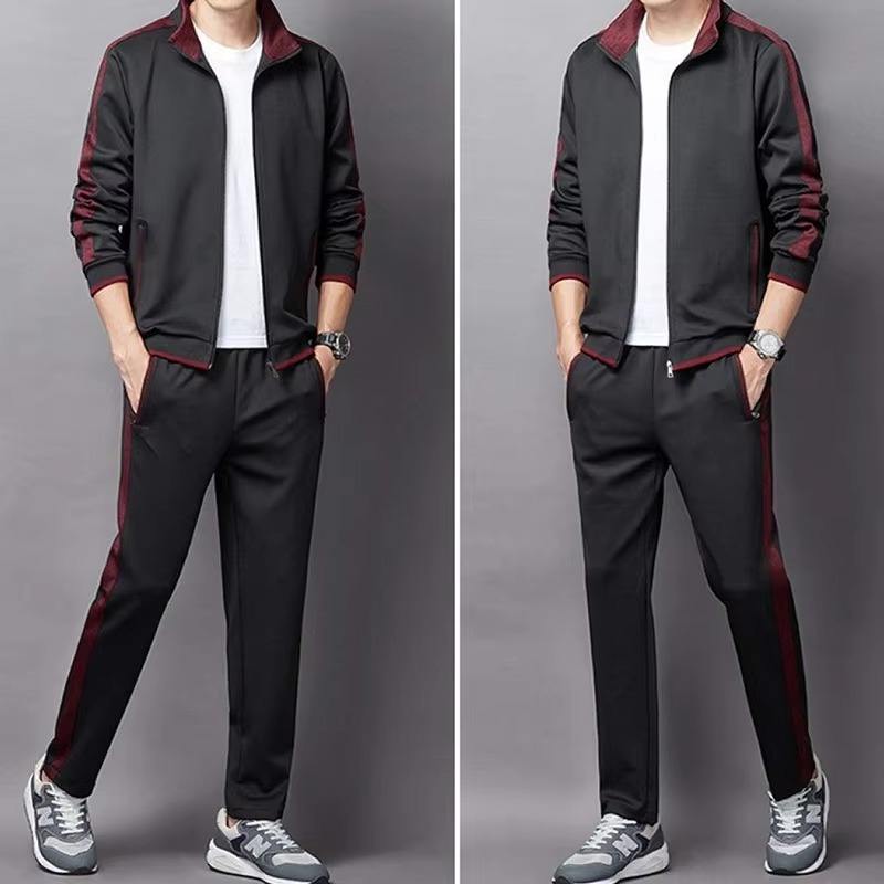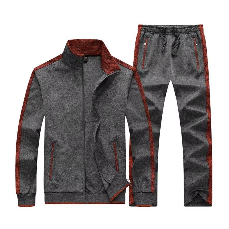 ชุดวอร์มแขนยาวผู้ชายแฟชั่นใหม่ ระบายอากาศได้ดี คุณภาพสูง ชุดกีฬาสีพื้นสองชิ้น จากผู้ผลิต