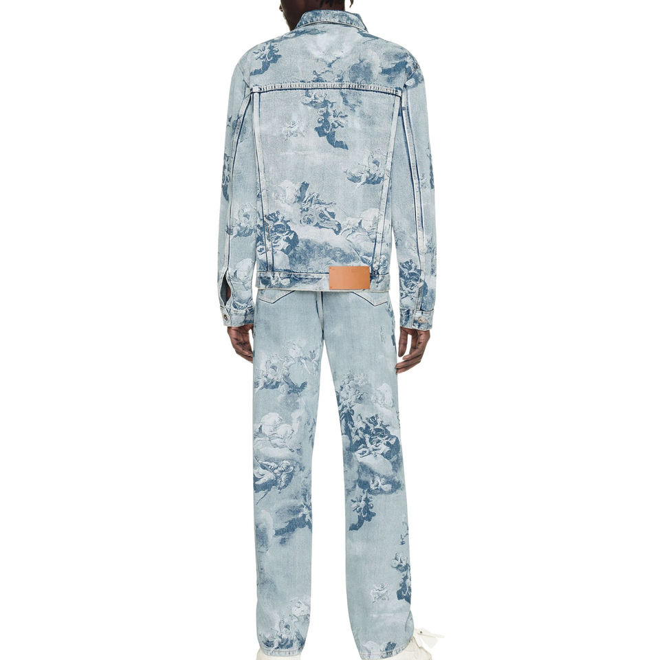 ชุดแจ็กเก็ตผ้ายีนส์เอวสูงสำหรับผู้ชาย, ชุดเสื้อแจ็กเก็ตยีนส์ผ้าฝ้ายยืดได้ระบายอากาศได้ดี