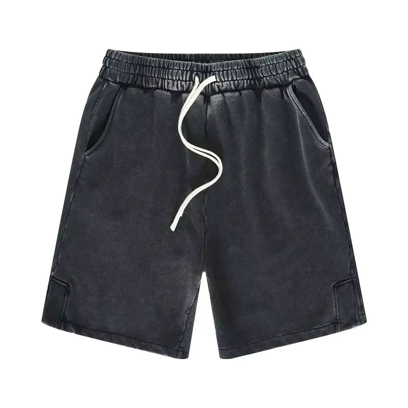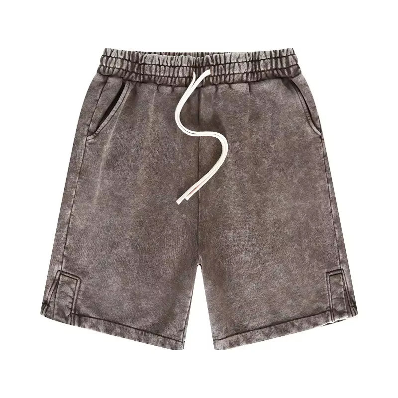 กางเกงขาสั้นผู้ชายแฟชั่นใหม่แบบมีเชือกผูกเอว ล้างสีแบบแอซิดวอช พิมพ์ลายตามสั่ง ผ้าฝ้ายวินเทจ กางเกงยีนส์ขาสั้นสำหรับผู้ชาย ดีไซน์ล่าสุด