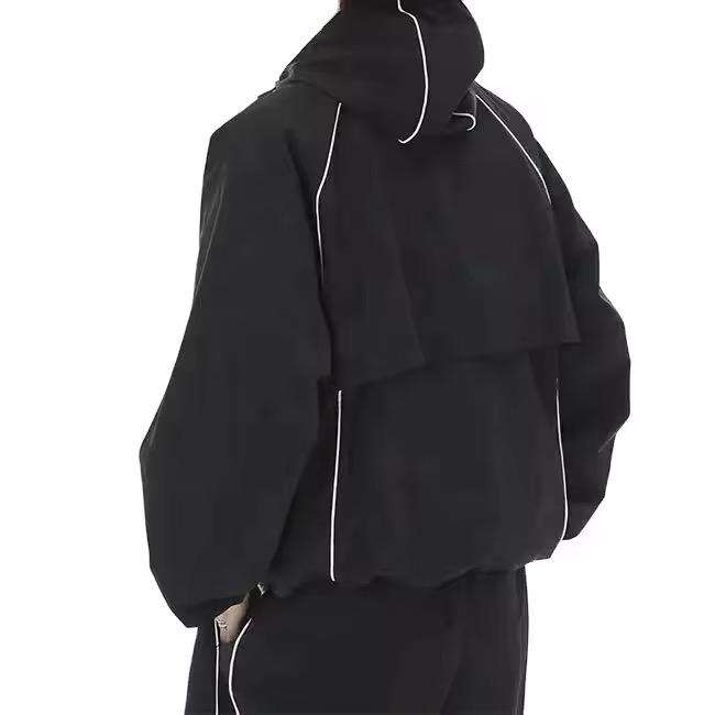 เสื้อกันลมมีซิปสำหรับผู้ชายผ้าซาตินมีฮู้ดปักลายแนวสตรีทเสื้อกันลมแห้งเร็วสำหรับฤดูใบไม้ร่วง