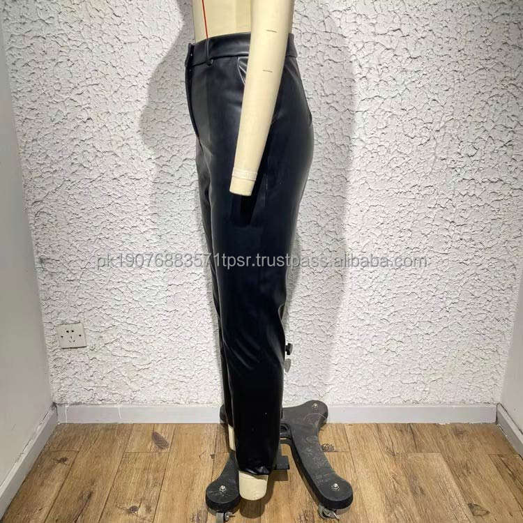 กางเกงขายาวทรงบานปลายขาหนังเทียมสำหรับผู้ชาย สไตล์ฮิปฮอปแบบมอเตอร์ไซค์ เอวกลางลำลอง