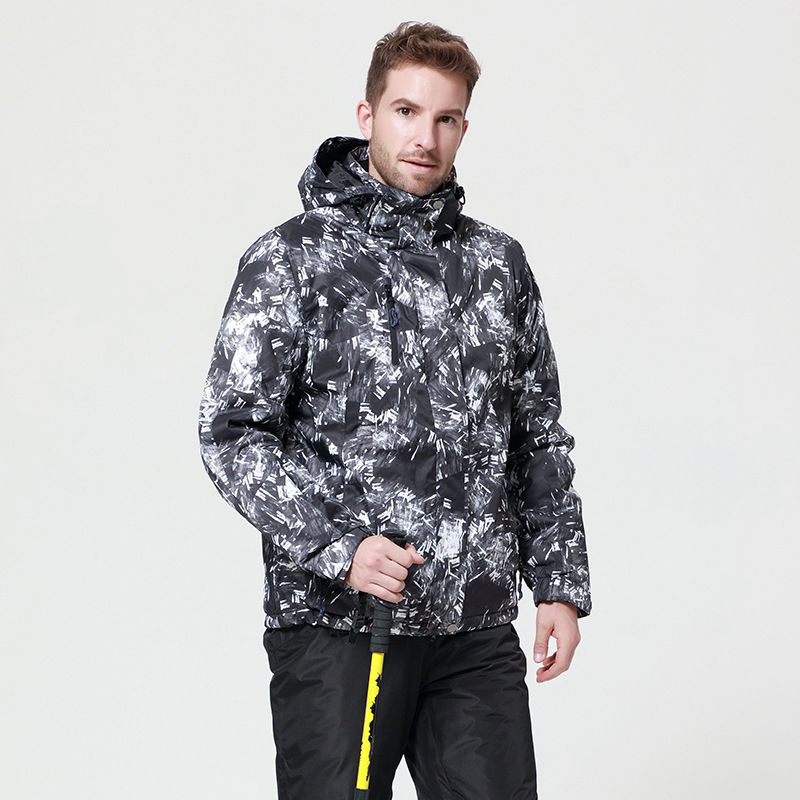 Men's New Outdoor Winter Two-Piece Printed Ski Suit Breathable Windproof Waterproof Taped Seams Suspender Pants Double Board