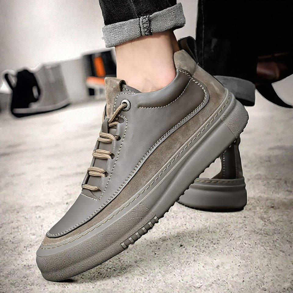 รองเท้าผ้าใบหนังลำลองสำหรับผู้ชายดีไซน์แบบผูกเชือกขนาด38-44สวมใส่สบายเพิ่มความสูงในฤดูร้อน