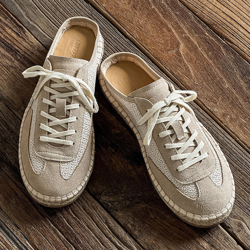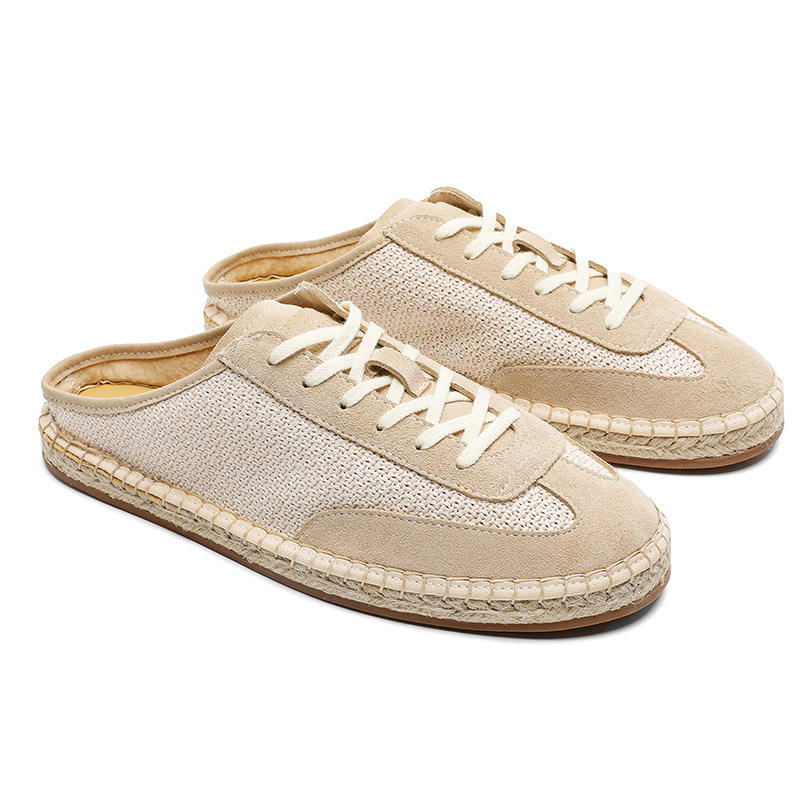 รองเท้าหนังส้นเตี้ยสไตล์ใหม่ของผู้ชายรองเท้าแตะครึ่งส้นแบนแบบเปิดปิดระบายอากาศได้ดีทันสมัยสำหรับฤดูใบไม้ผลิ