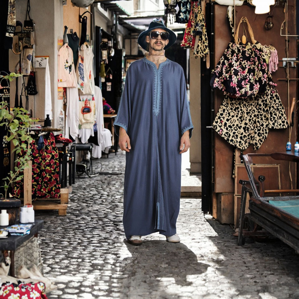 เสื้อคลุมผู้ชายสไตล์โมร็อกโกแบบใหม่ ผ้าฝ้าย แขนยาว เสื้อคลุมอิสลามลำลองสำหรับผู้ใหญ่ ระบายอากาศได้ดี ความยาวระดับข้อเท้า ทำด้วยมือ
