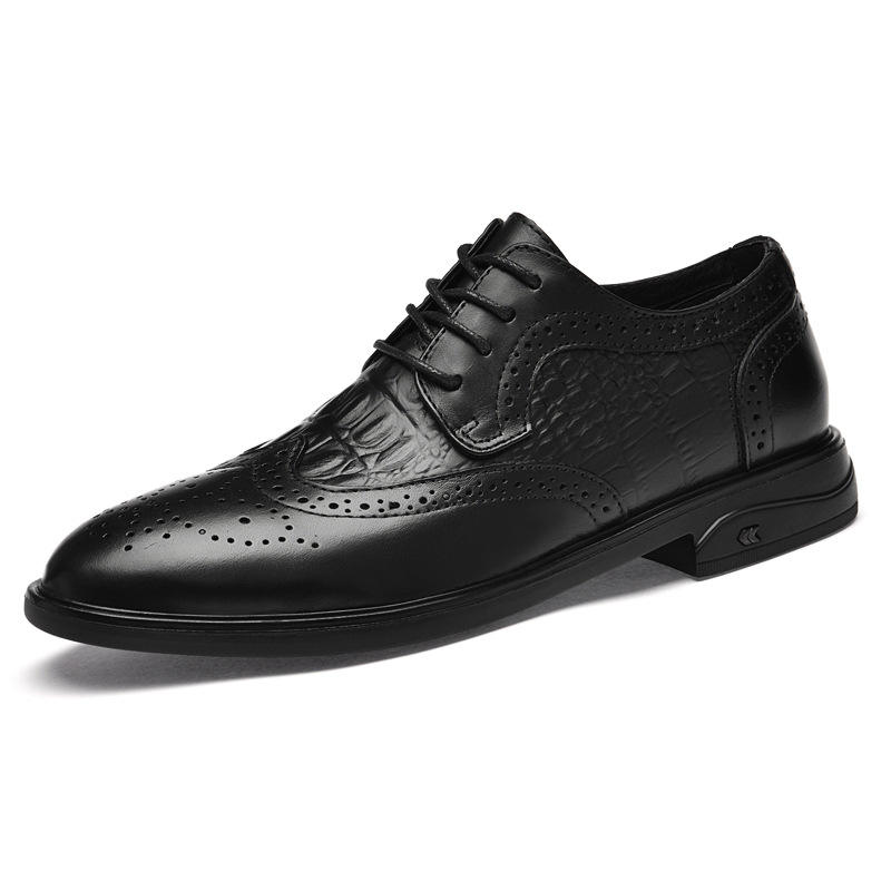 Men's New Top-Layer Cowhide Brogue Carved Lace-up Large Size Casual for Leather Shoes Autumn Breathable Non-Slip Genuine