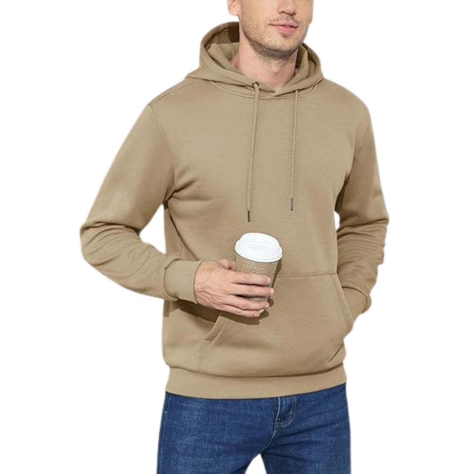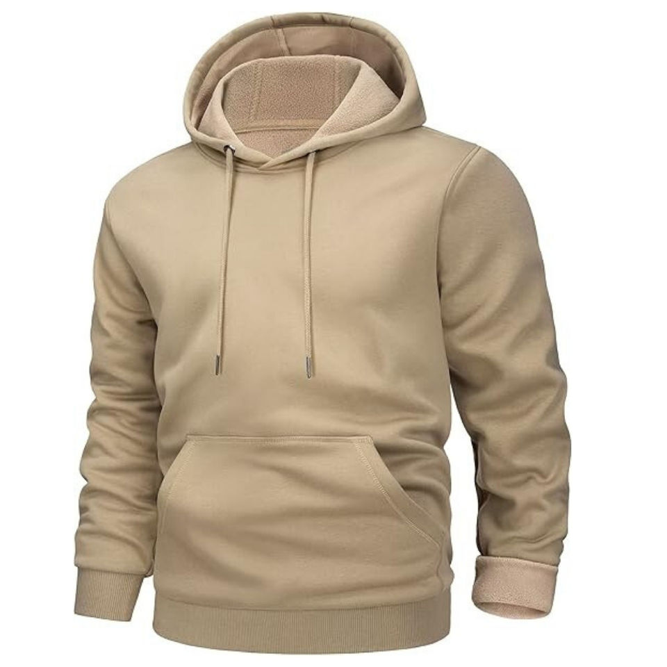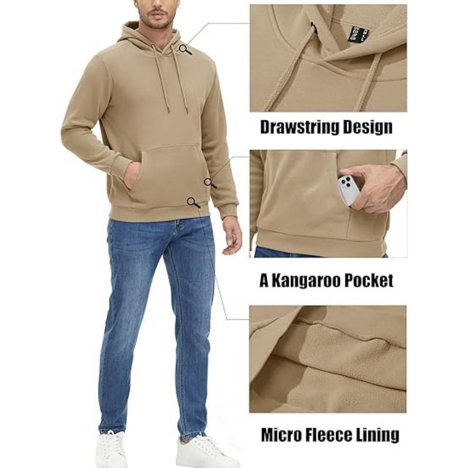 เสื้อฮู้ดผ้าฟลีซแขนยาวสำหรับผู้ชาย, เสื้อสเวตเตอร์แบบสวมหัวมีกระเป๋าใส่กลางแจ้งผ้าคอตตอน100% สูงสุดสำหรับฤดูหนาว