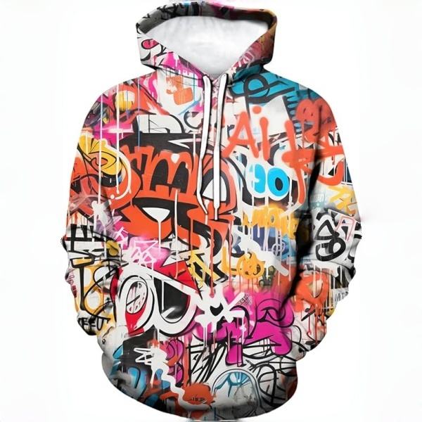 เสื้อฮู้ดผู้ชายลายกราฟฟิตีฮิปฮอปเท่ๆ สีสันสดใส ลายโทเท็ม ไซส์เล็ก สีม่วง
