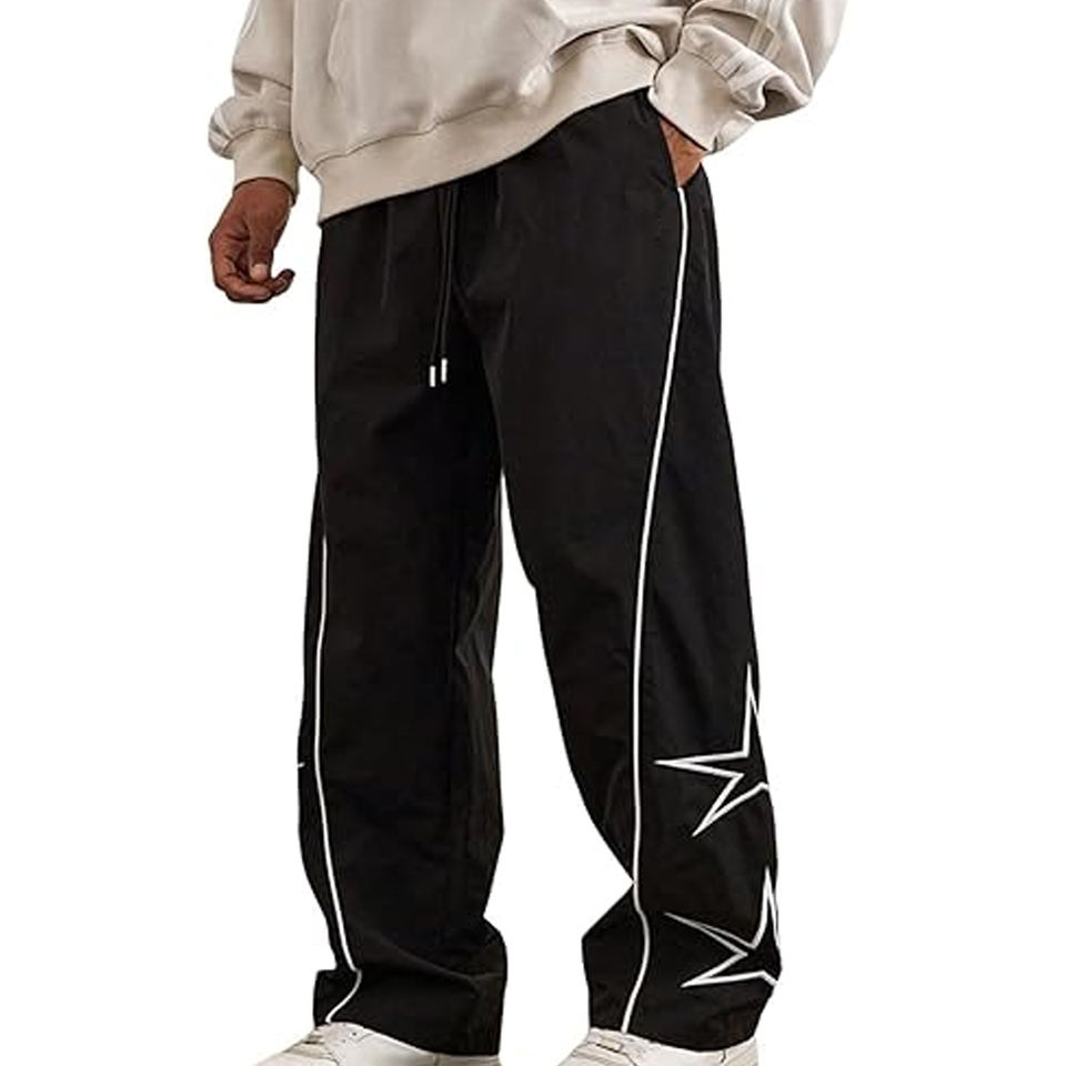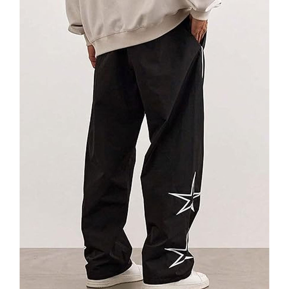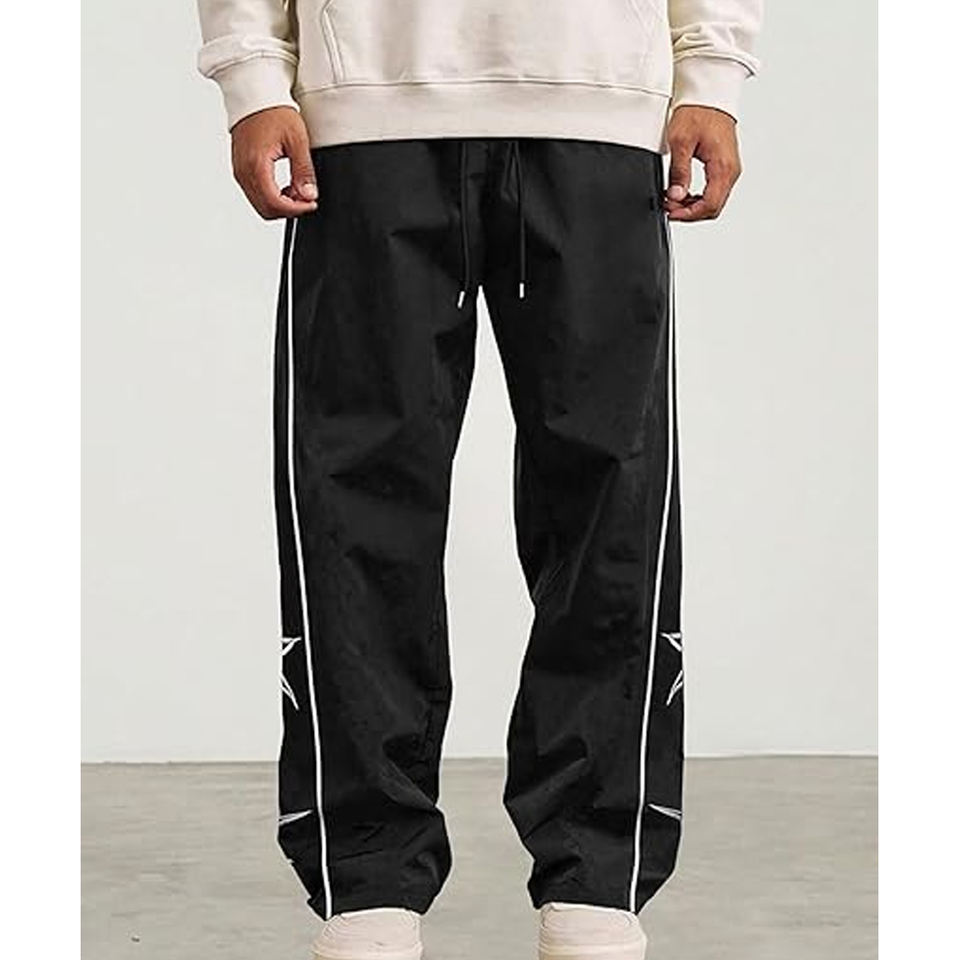 กางเกงวอร์มไนลอนผู้ชายทรงหลวมเอวยางยืดชุดกีฬา