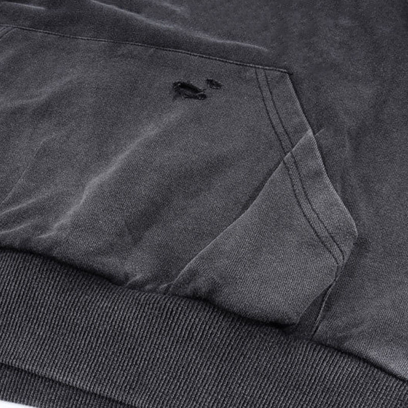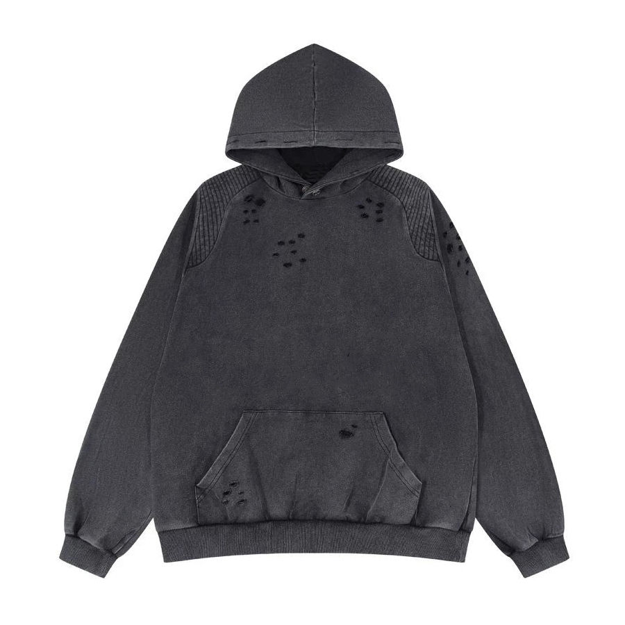 เสื้อฮู้ดดี้โอเวอร์ไซส์ผ้าฟลีซคอตตอน 100% สำหรับผู้ชาย ปักลายปะแบบดิสเทรส พร้อมสกรีนพิมพ์ รับทำโลโก้ OEM ตามสั่ง