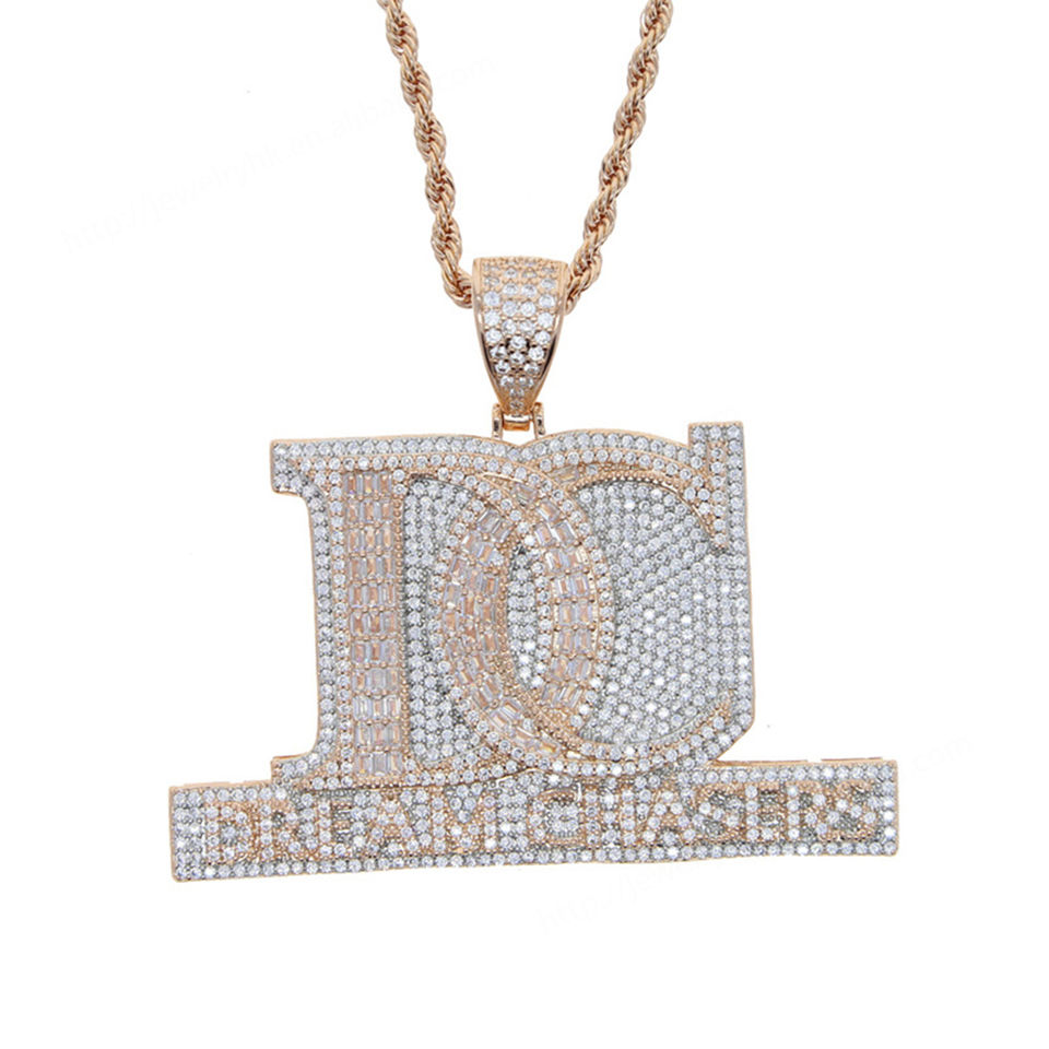 สร้อยคอพร้อมจี้ทรงสี่เหลี่ยม DC Dream Chasers สีทองสำหรับผู้ชายเครื่องประดับฮิปฮอปแบบ Blingbling สำหรับการหมั้น