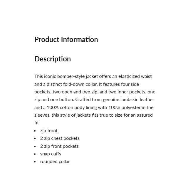 แจ็คเก็ตหนังชื่อผลิตภัณฑ์