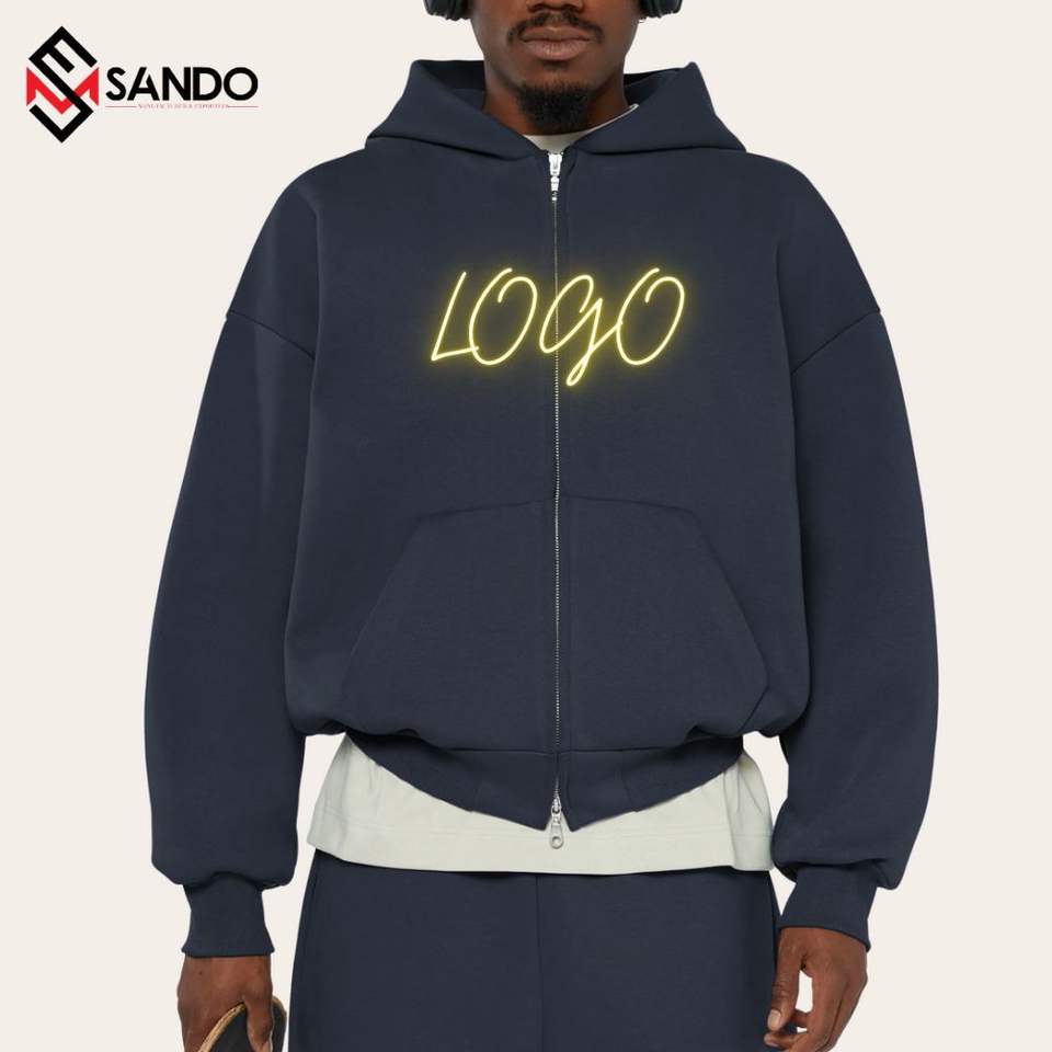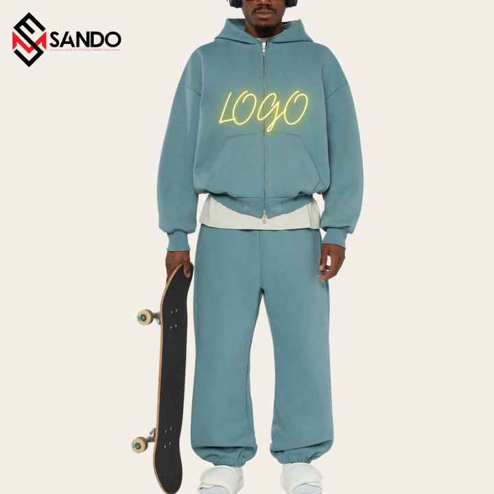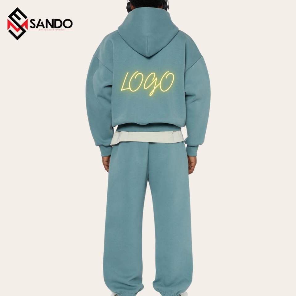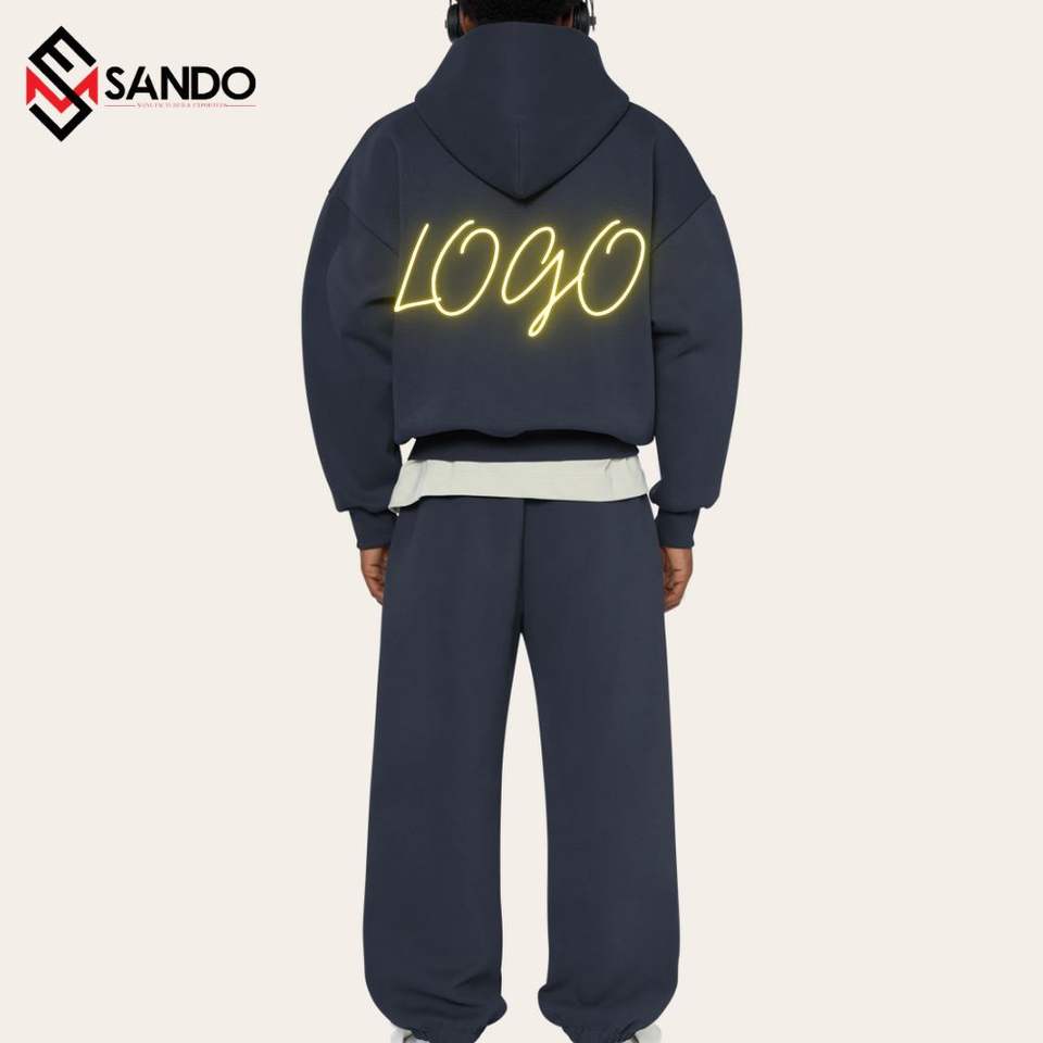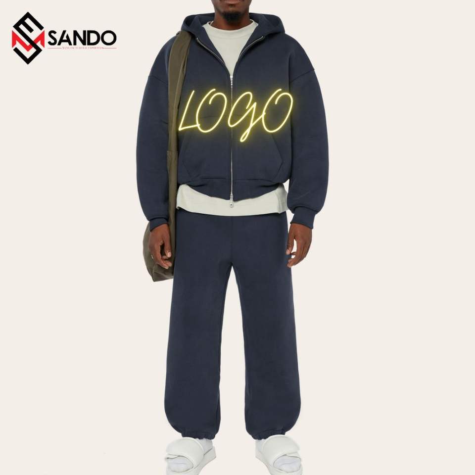 ชุดวิ่งผ้าฝ้ายออร์แกนิกสำหรับผู้ชายเสื้อกันหนาวสองชิ้นขนาดใหญ่ออกแบบโลโก้ได้ตามต้องการ