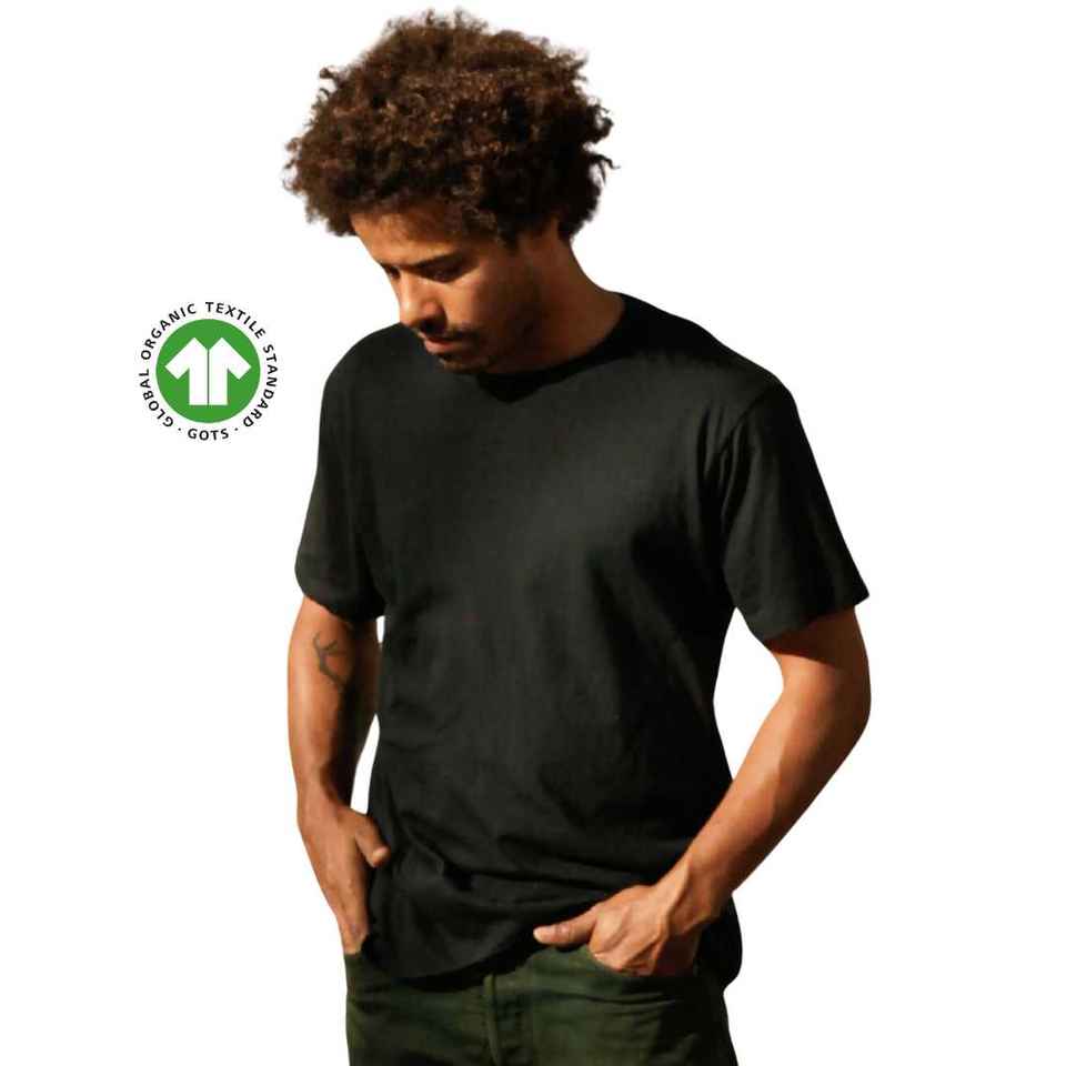 เสื้อยืดลูกเรือออแกนิกสำหรับผู้ชายเสื้อเจอร์ซีย์สีดำขนาด4.3ออนซ์นุ่มและยืดหยุ่นพร้อมปกยางเพื่อความสบายในทุกๆวัน