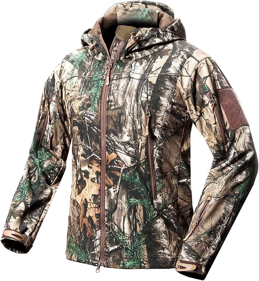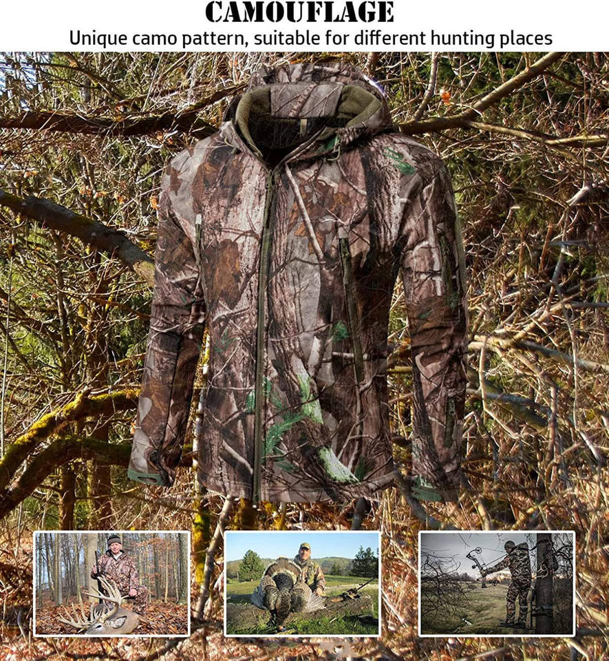 แจ็คเก็ตยุทธวิธีลายพรางสำหรับผู้ชายกลางแจ้งเสื้อแจ็คเก็ตขนแกะมีฮู้ดสำหรับล่าสัตว์