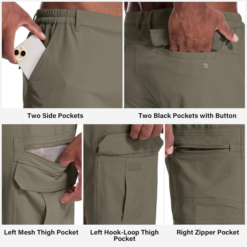 Men's 100% Cotton Outdoor Casual Quick Dry Fishing & Hiking Shorts Expandable Waist Water-Resistant Digital Printing Lightweight