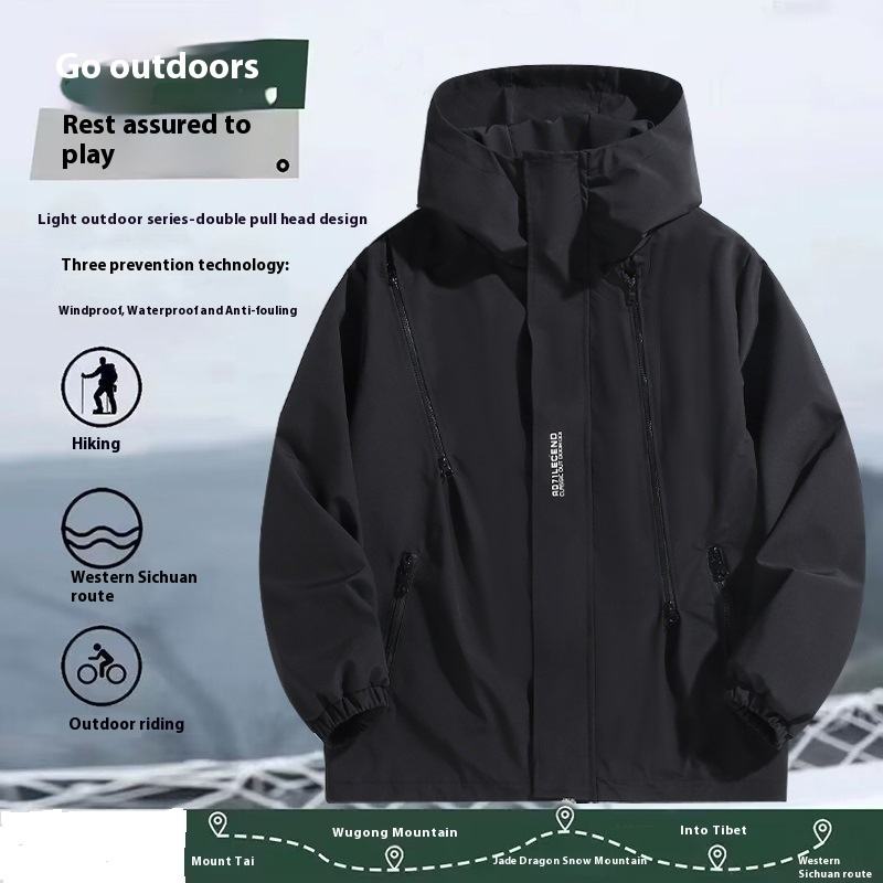 Men's Outdoor Jacket Three-Proof Waterproof Windproof Anti-Outdoor Storm Jacket Plus Size Loose Hiking Jacket