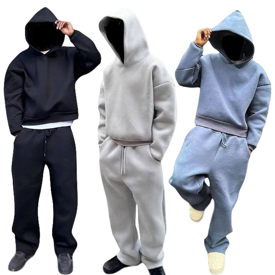 ชุดวอร์ม2ชิ้นสำหรับผู้ชายชุดวอร์มผ้าฝ้าย100% โอเวอร์ไซส์พิมพ์โลโก้กางเกงขายาวสีทึบแขนยาวพิมพ์ลายโลโก้