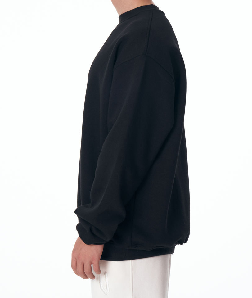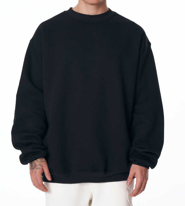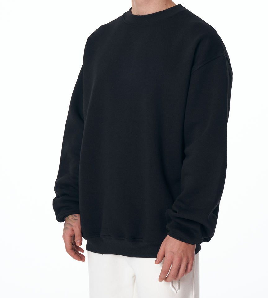 เสื้อคอกลมโอเวอร์ไซส์สีดำสำหรับผู้ชาย ผลิตจากผ้าโพลีเอสเตอร์/คอตตอนผสมแบบเป็นมิตรต่อสิ่งแวดล้อม สไตล์สตรีทแวร์คุณภาพพรีเมียม ผลิตภัณฑ์ OEM ฤดูใบไม้ร่วง 2024