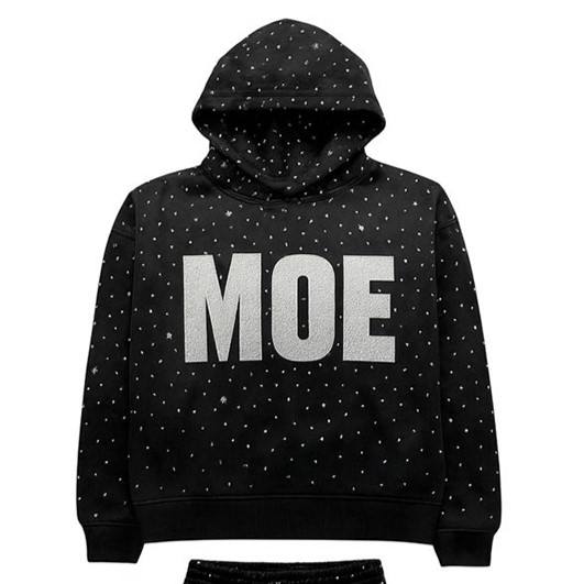 ชุดเซ็ตแทรคสูทผู้ชายไซส์ใหญ่ประดับเพชรเทียม พร้อมโลโก้สั่งทำ เสื้อฮู้ดดี้ กางเกงขายาวทรงกว้าง สไตล์สตรีทแวร์สุดเท่ ชุดสองชิ้น พร้อมโลโก้สั่งทำ