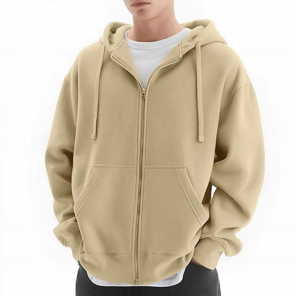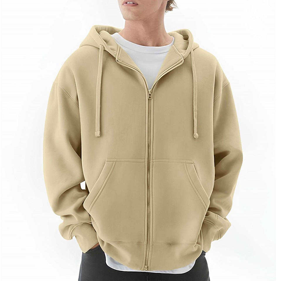 เสื้อฮู้ดซิปผู้ชายไซส์ใหญ่ พิมพ์โลโก้ด้านหน้า ทรงหลวม กันลมสำหรับฤดูหนาว