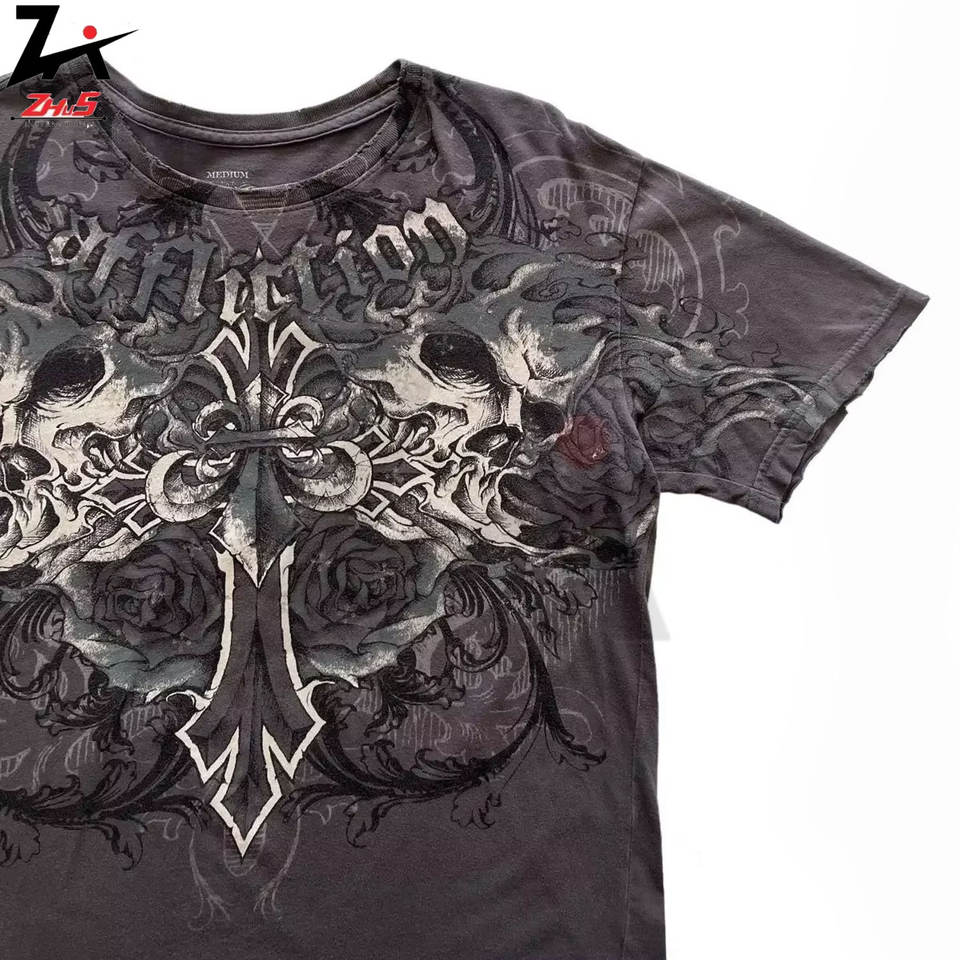 เสื้อยืดโอเวอร์ไซส์ผู้ชาย ผ้าฝ้าย 100% เนื้อหนา สไตล์ฮาราจูกุ กอธิค สตรีทแวร์ แขนสั้น คอกลม ดีไซน์เท่ห์ แนวอัลเทอร์เนทีฟ