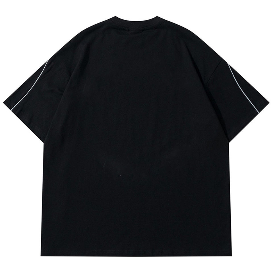 เสื้อยืดโอเวอร์ไซส์สีดำสำหรับผู้ชาย สไตล์สตรีทแวร์ ผ้าฝ้ายสั่งทำพิเศษ พร้อมขอบตัดสี ทรงหลวม แฟชั่นฤดูร้อน รับผลิตแบบ OEM